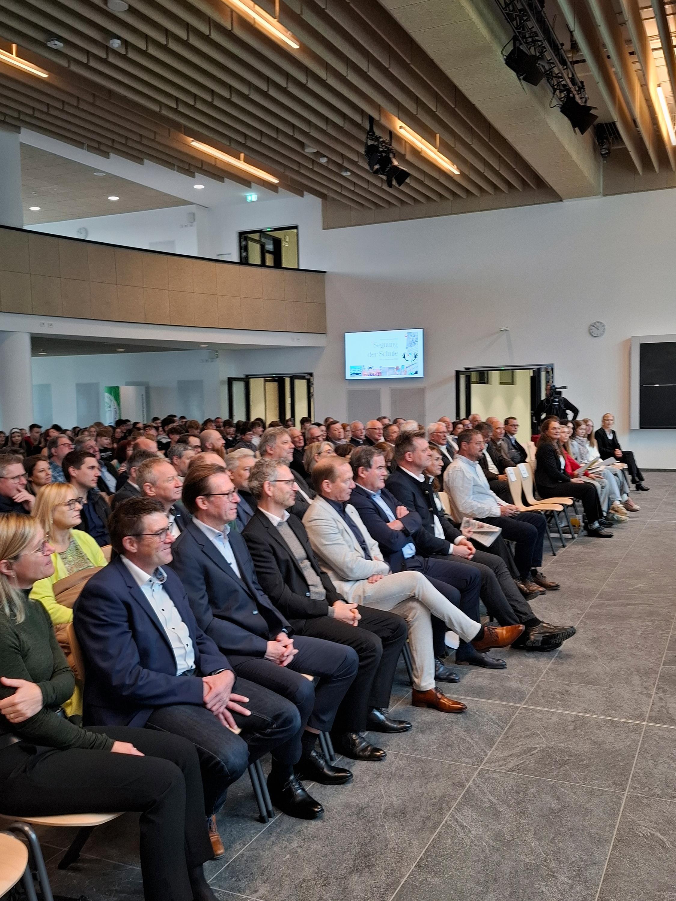 Nach der Begrüßung durch Konrektor Wilfried Krauß ging Landrat Albert Gürtner in seiner Rede kurz auf den Weg zum Neubau ein: „Angesichts steigender Schülerzahlen und moderner Anforderungen entschied der Bau- und Vergabeausschuss 2018, ein neues Schulgebäude zu errichten. Nach dem Abbruch der alten Sporthalle im Herbst 2022 erfolgte am 15. Februar 2023 der Spatenstich. Pünktlich zum Schuljahresbeginn 2025/2026 konnte das neue Gebäude nach zweieinhalb Jahren Bauzeit in Betrieb genommen werden. Das ist eine absolute Punktlandung, für die ich mich bei allen Verantwortlichen und Beteiligten sehr herzlich bedanke.“