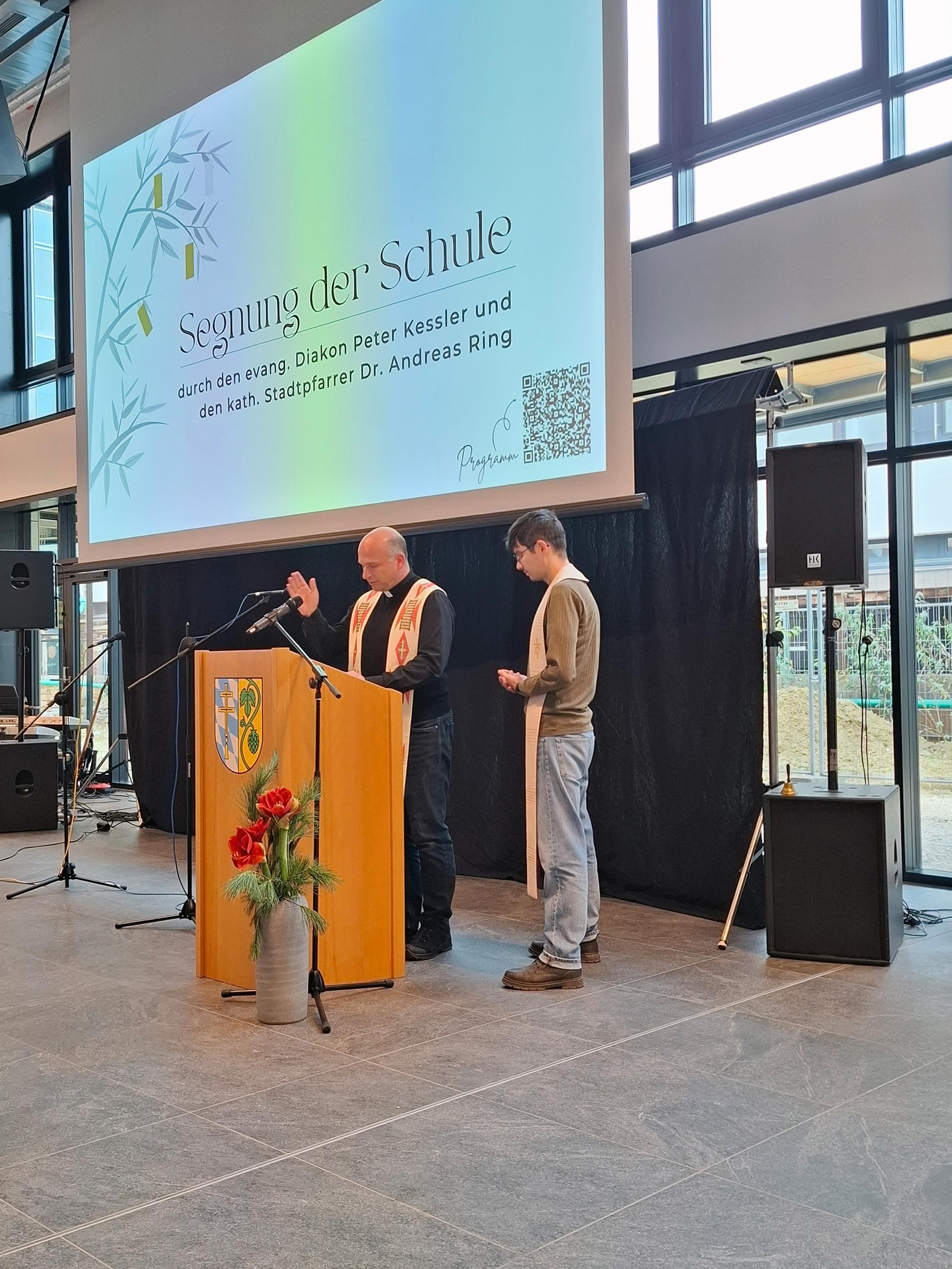 Zahlreiche Gäste, darunter Vertreter der Schulfamilie, aus Politik, Verwaltung und Planungsbüros sowie zahlreiche Schülerinnen und Schüler nahmen an der Veranstaltung teil. Die Segnung des Gebäudes übernahmen der katholische Stadtpfarrer Geisenfelds Dr. Andreas Ring und der evangelische Diakon Peter Kessler. Ein buntes Programm aus Grußworten, musikalischen und sonstigen künstlerischen Beiträgen verlieh der Feier einen würdigen Rahmen.