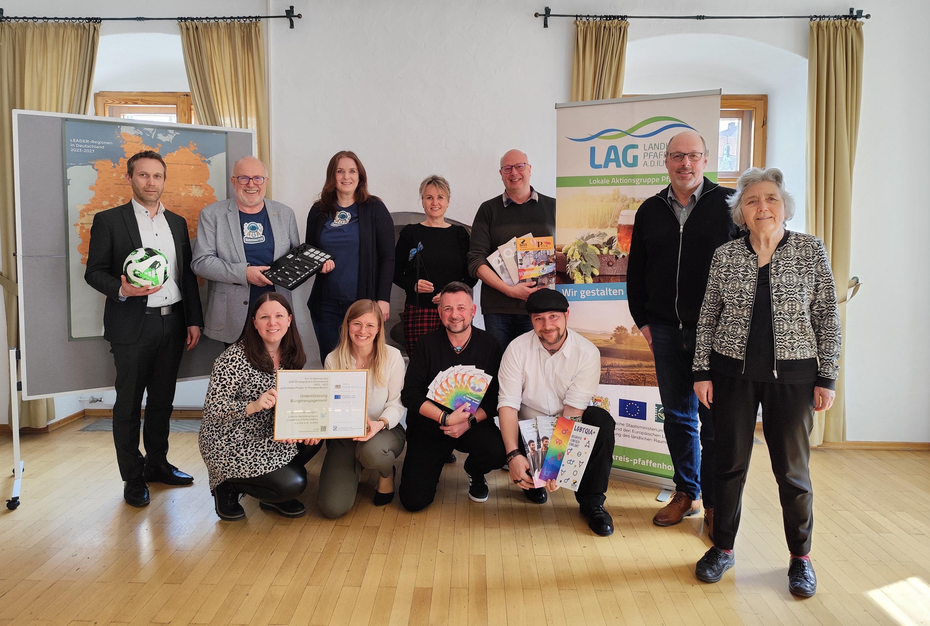 Informieren möchte auch der Verein Queer Pfaffenhofen e.V. Zu diesem Zweck kann er nun mit Hilfe der LEADER-Förderung „Mobile Informations- und Begegnungsstände“ anschaffen und sein Angebot landkreisweit ausweiten. Durch die klar erkennbaren, professionell gestalteten Anlaufstellen sollen Hemmschwellen abgebaut und der Wiedererkennungswert gesteigert werden. Der Verein möchte über das Leben queerer Menschen informieren, Aufklärungsarbeit leisten und sich so für ein besseres, respektvolles Miteinander und eine Stärkung der Gemeinschaft einsetzen. Die Informations- und Begegnungsstände sollen neben der Informationsarbeit auch für Mitmachaktionen, Dialogformaten und persönlichen Gesprächen bei etablierten Veranstaltungen im Landkreis verwendet werden.