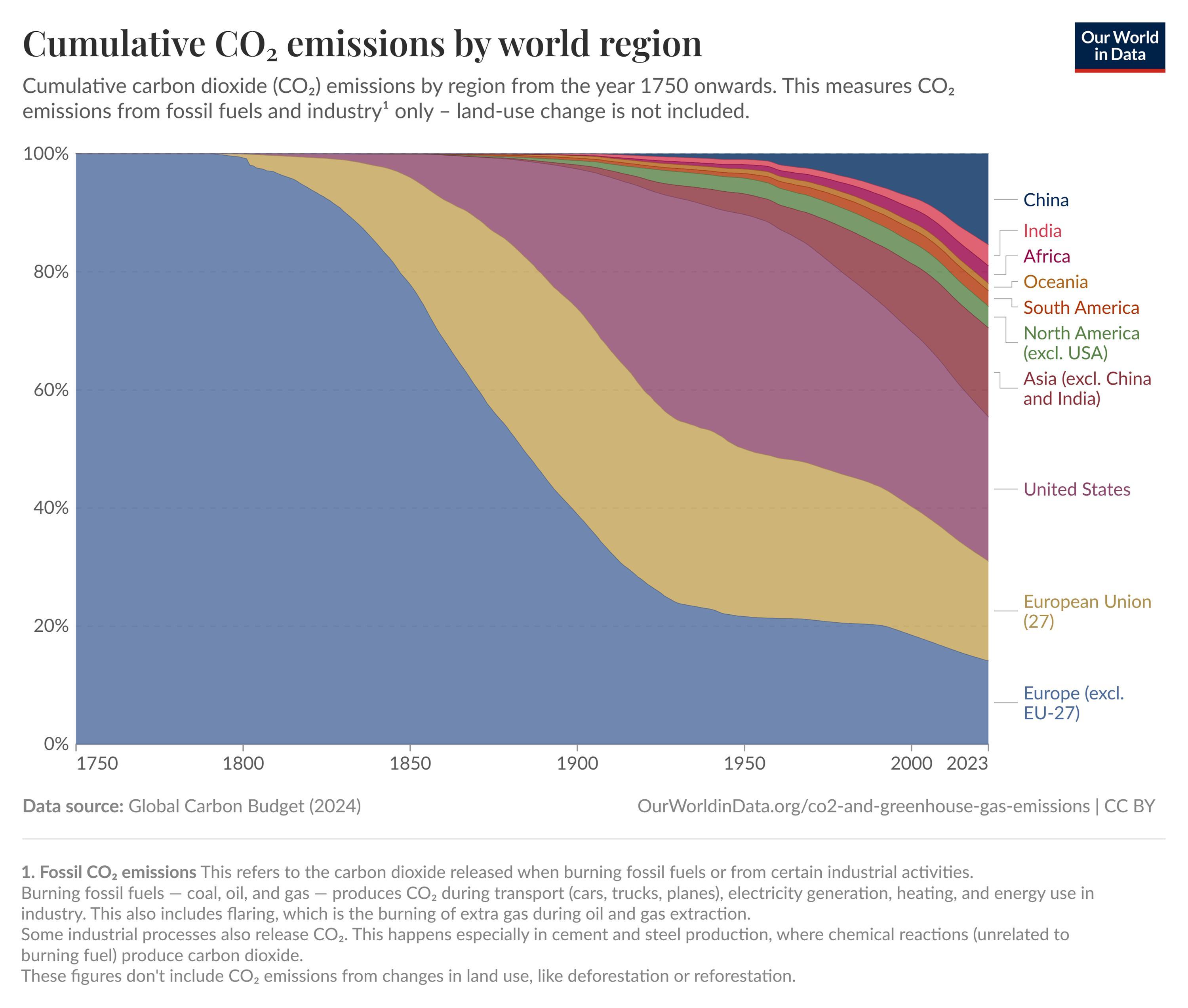 - kumulierte Treibhausgasemissionen, welche die historische Verantwortung für den Klimawandel nachzeichnen,